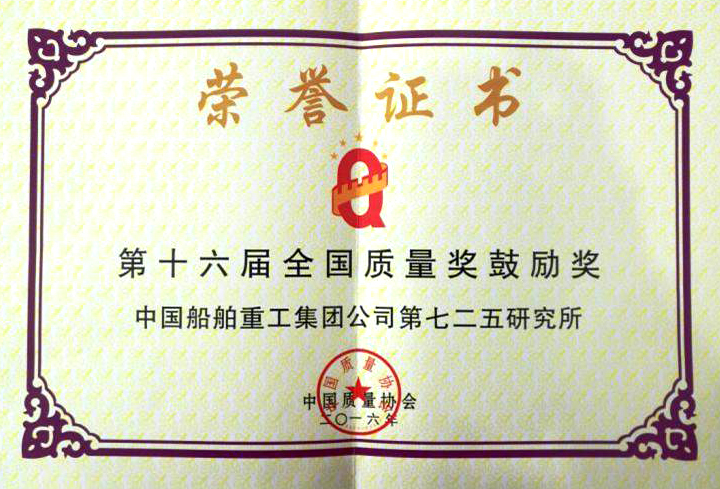 榮獲全國質(zhì)量獎鼓勵獎